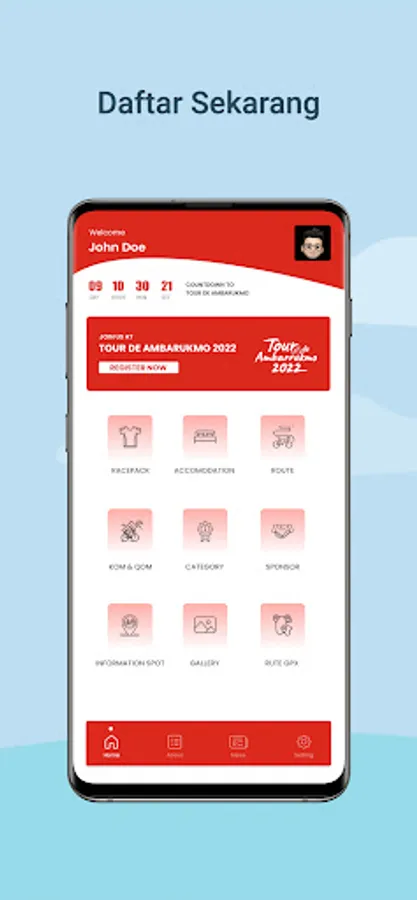 Tour De Ambarrukmo is an annual cycling event that was successfully organized by The Ambarrukmo, namely Plaza Ambarrukmo, Royal Ambarrukmo and Grand Ambarrukmo Hotel, fully supported by Dinpar DIY, Korem, Polda and DIY Provincial Government as an event that aims to strengthen Yogyakarta's image as a tourist and cultural city through cycling activities.