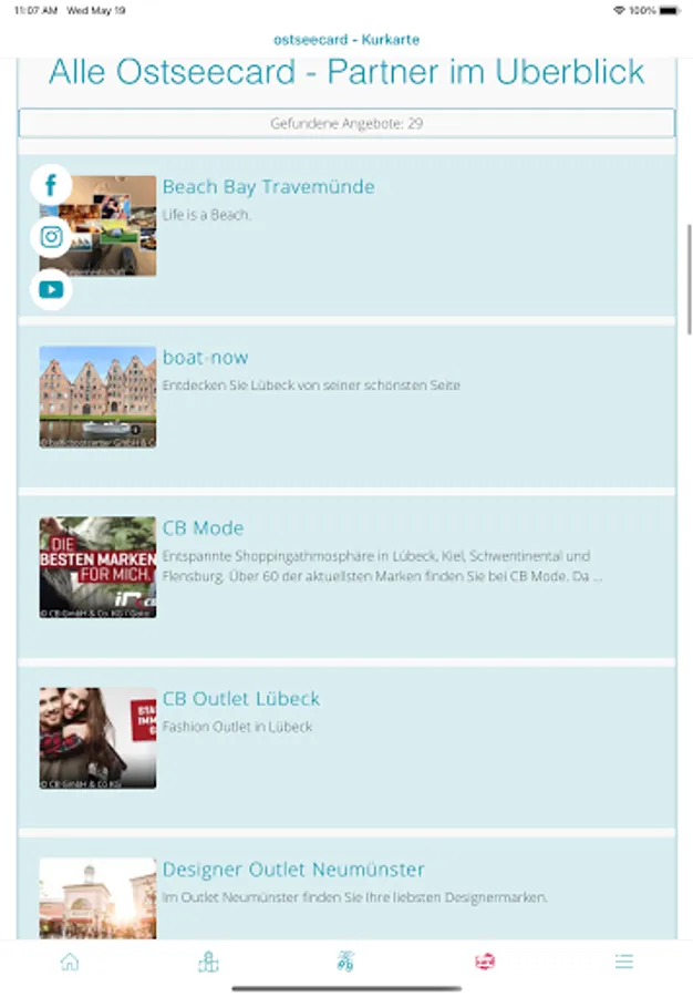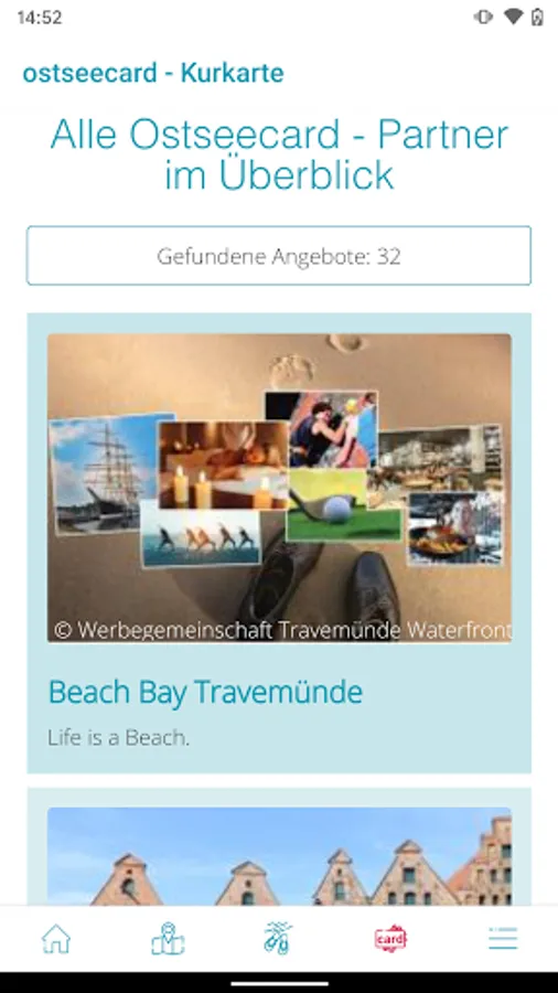 - ostseecard: Presentation of all ostseecard partners and the advantages that you as the cardholder enjoy there. Display in list form.