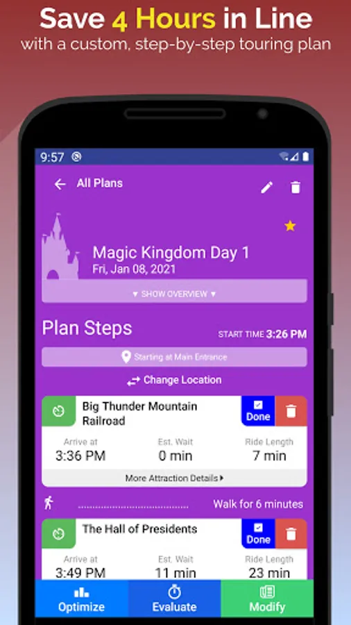 -Customized step-by-step touring plans for each Disney park. You tell LINES which rides you want to see, and LINES will create a step-by-step itinerary showing when to go to each ride to avoid long lines. You can even change your plans while you’re in the park!