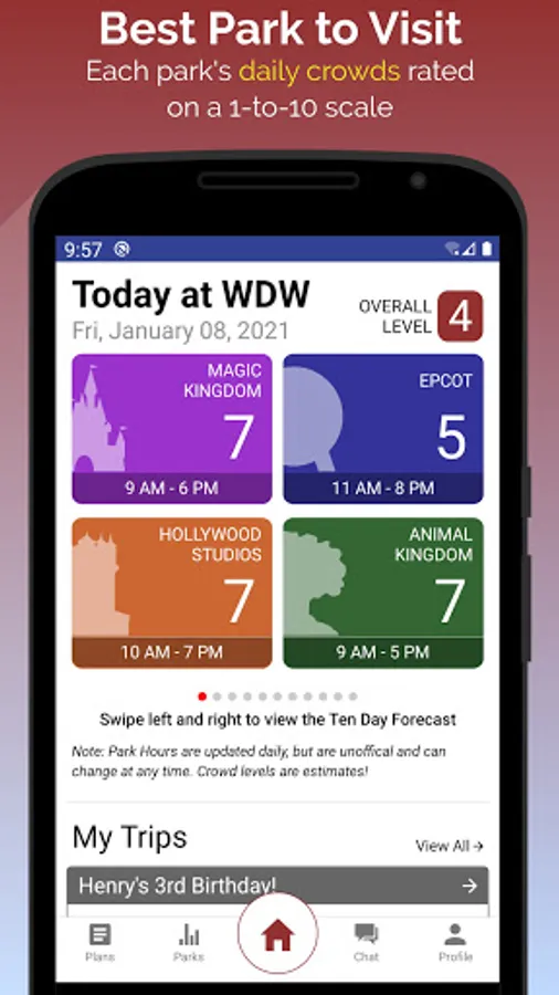 -A Crowd Calendar showing you how busy each park will be over the next ten days.