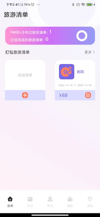 Based on trip length, weather and planned activities, your travel checklist will be generated. It will be a good helper for your summer vacation, weekend leisure, official travel, self-driving travel and camping plans.