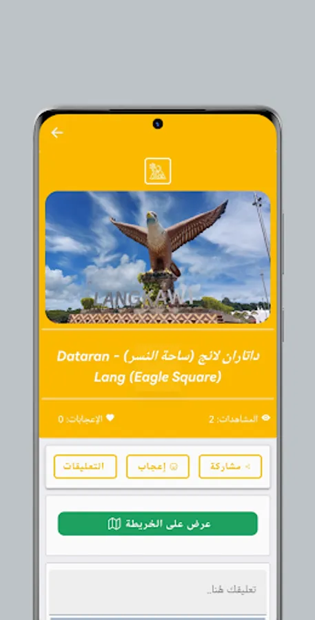 The user can also know the places most viewed and liked by users, and other available tools in the Langkawi application are adding the site to the likes list, sharing it through social media, and adding comments for the benefit of other users.