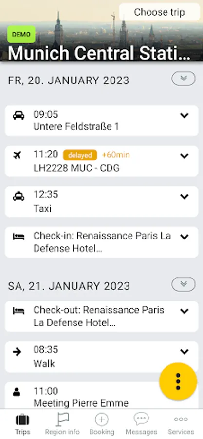 • Mobile travel plan with all details of booked flights, train travel, hotels and rental cars