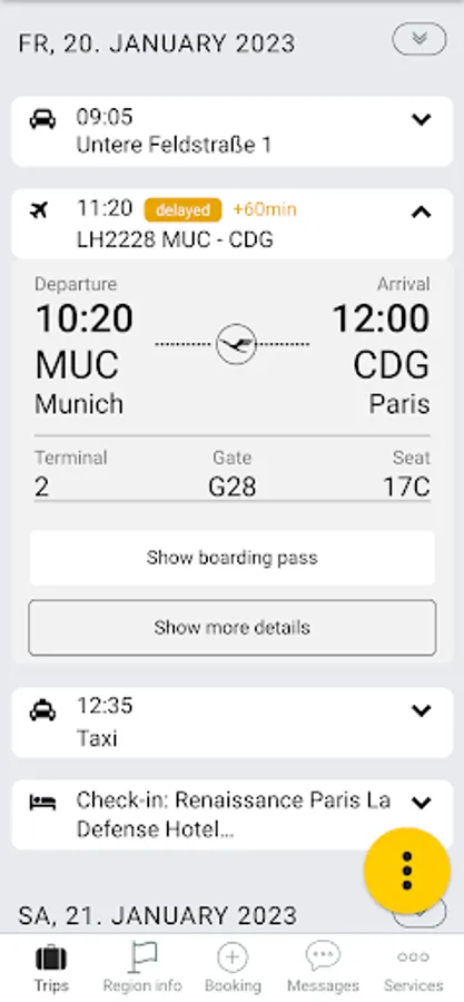 • Real-time notifications for flights and train journeys (delays, gate changes, cancellations)