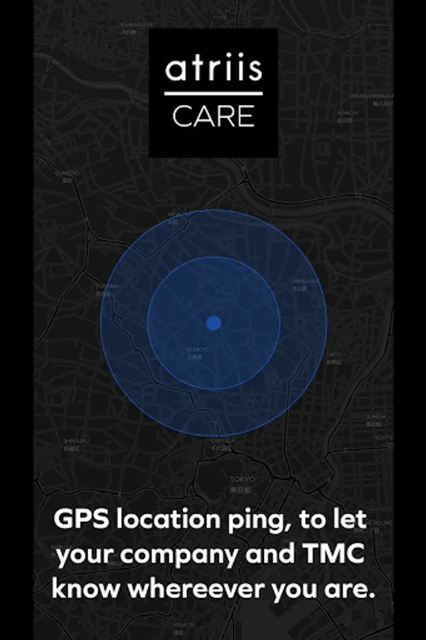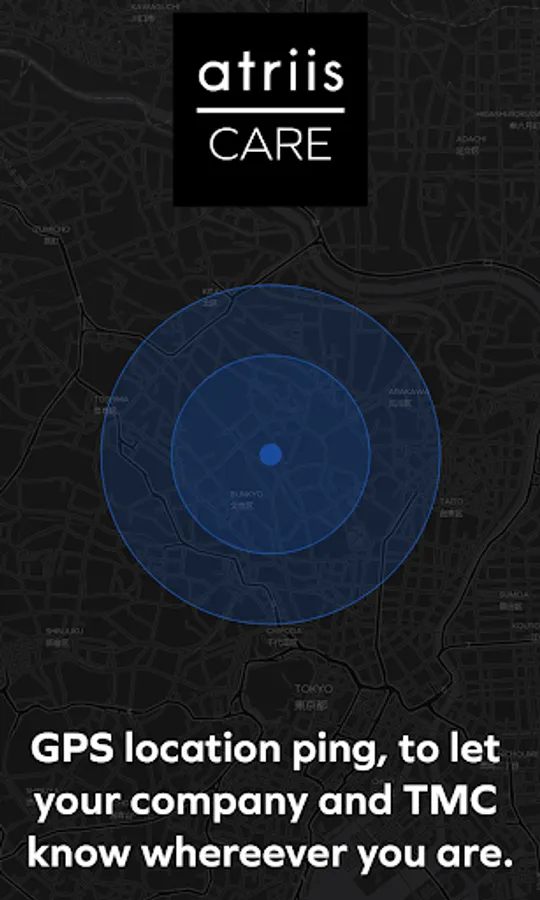 Atriis CARE allows you sending a GPS location ping, to let your company and TMC know whereever you are around the globe, to provide you with travel support and emergency assistance.