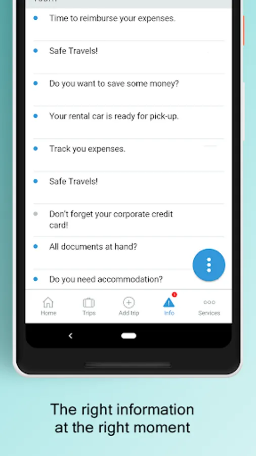 The app monitors flight and train travels automatically and informs you in case of delays, cancellations or gate changes. Security notifications provided by the crisis specialist A3M warn you in case of terrorist threat, natural disasters or riots on-site.