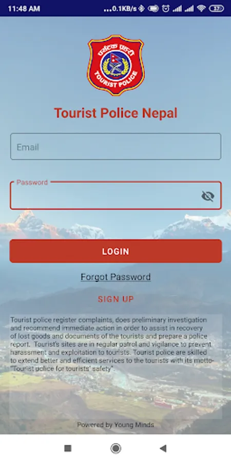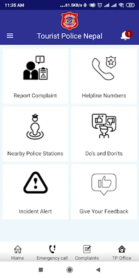 This App has been developed by Tourist Police Nepal to help Tourists in Nepal. This app allows report complaint against any odds, discrimination or offense against tourist directly by tourist. It provides a lot of information such as do's and don'ts, helpline numbers, nearby tourist police stations, incident alert etc.