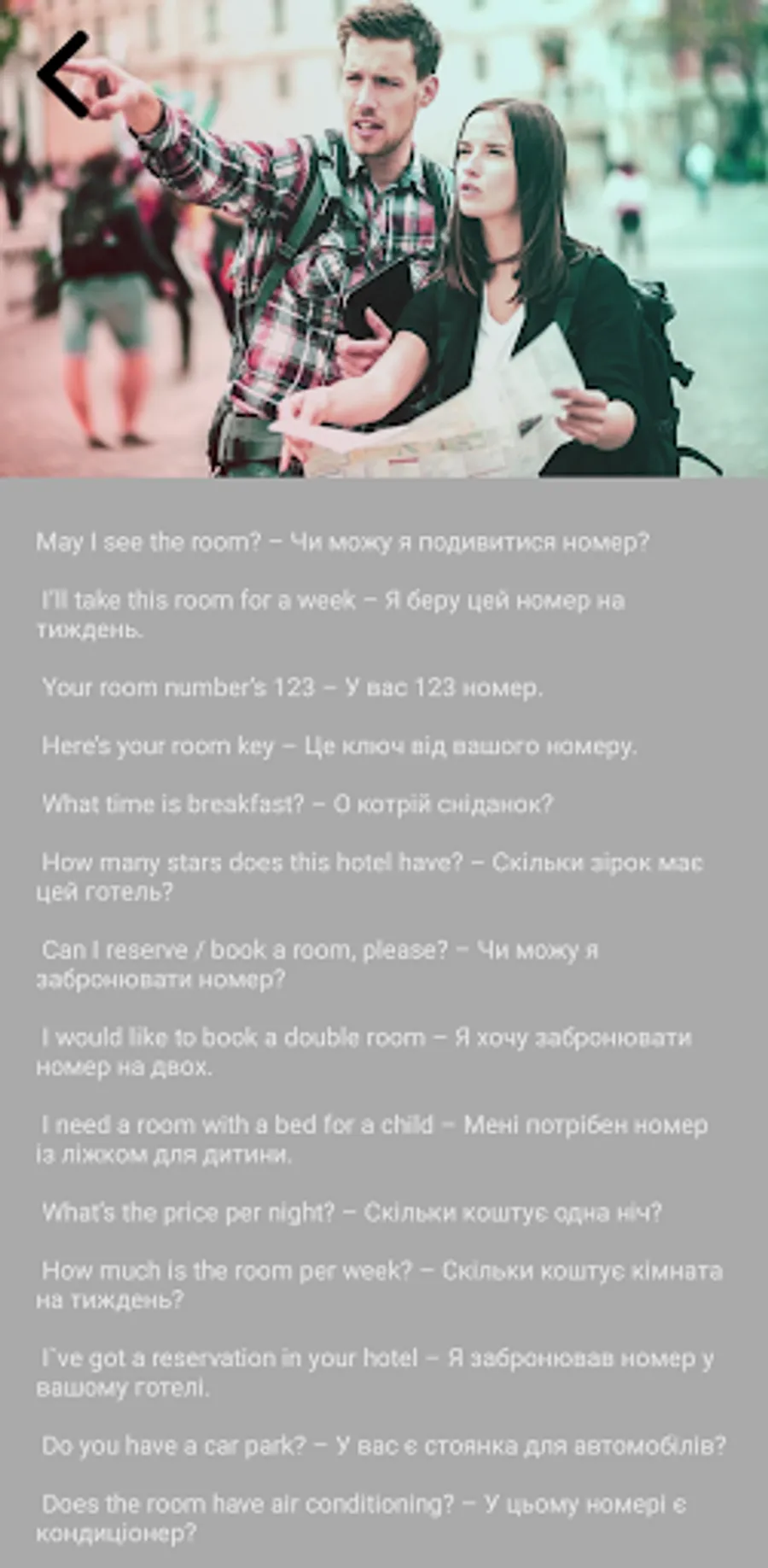 English For Tourists is a mobile app designed for people who love to travel and want to improve their English. Our app offers a wide variety of travel-related topics, from booking hotels and buying tickets to ordering food at a restaurant and chatting with locals.