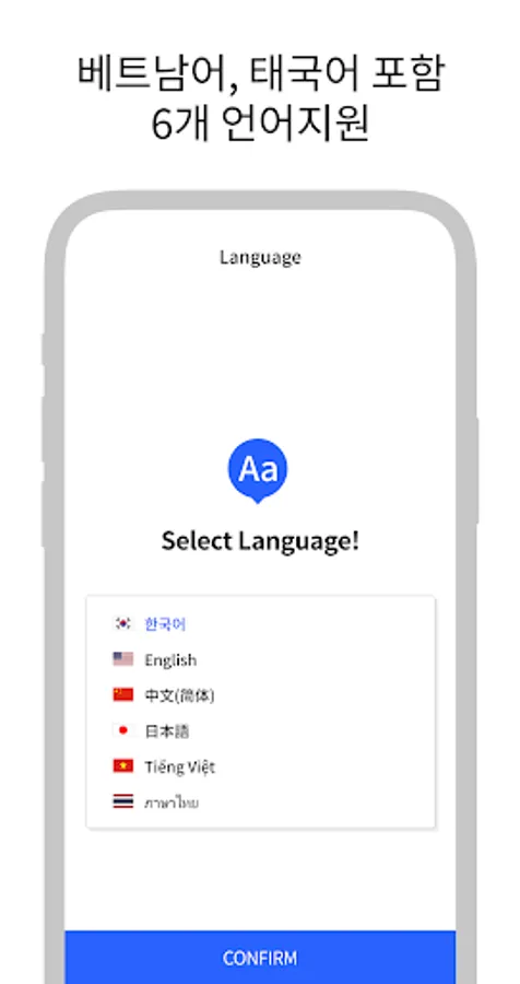 To provide a mobile environment that is easily accessible to foreigners, we provide services in six languages. [Korean, English, Chinese (Simplified), Japanese, Vietnamese, and Thai]