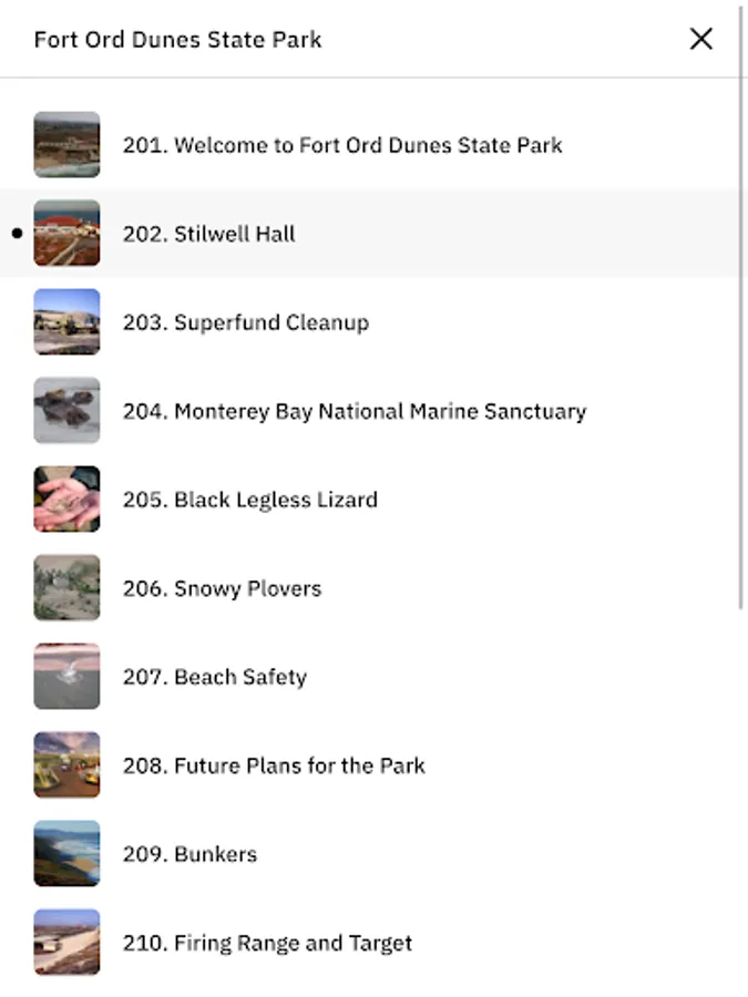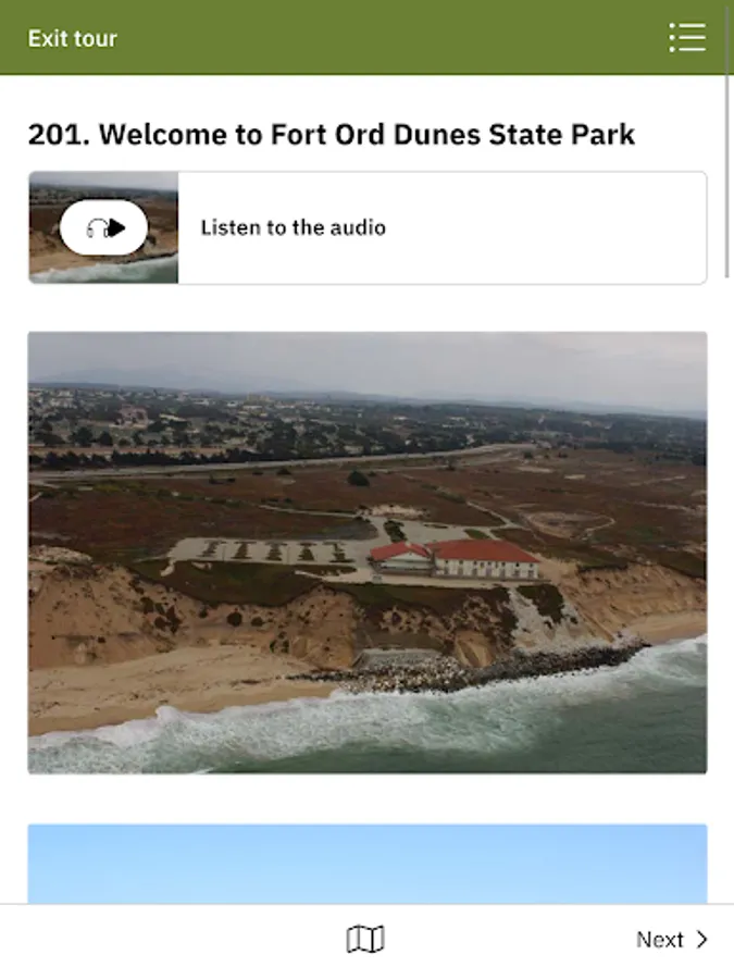 This app features educational audio tours of six State Parks within the Monterey District: Fort Ord Dunes State Park; Monterey State Historic Park; Asilomar State Beach and Conference Grounds; Point Lobos State Natural Reserve; Point Sur State Historic Park, and Pfeiffer Big Sur State Park. The audio tours provide on-location and armchair travelers alike the opportunity to learn more about Monterey’s diverse natural and cultural history at these various State Parks. In addition to audio recordings, the app features basic park information, image galleries, historic photos, and audio transcriptions. GPS maps allow visitors to explore the area and locate nearby sites.