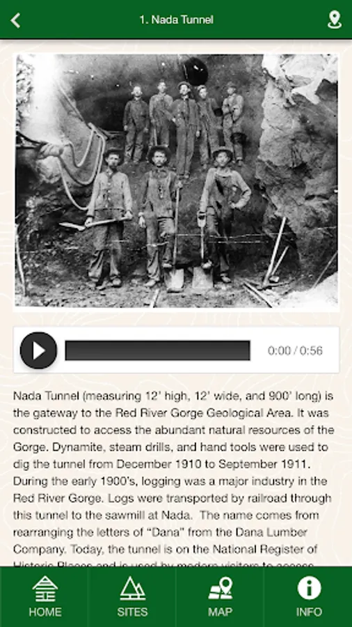 This app provides exclusive tours and content created by Daniel Boone's educational Interpreters and Rangers. Through these interpretive tours, visitors and armchair travelers alike can learn more about the area’s diverse natural and cultural history. Featuring audio, image galleries, historic imagery, and GPS maps, the app tells the story of our rich landscape through the eyes and words of those dedicated to preserving it.