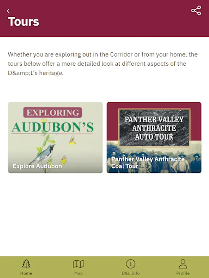 Explore history and the D&L Trail in the Delaware and Lehigh National Heritage Corridor. This app brings the stories from the National Canal Museum to the D&L Trail in the places that they happened. Learn more about trails, towns, history, and local businesses in the 5 county area in Eastern Pennsylvania. Plus there are tours about specific topics like geology, Audubon visiting the area, and other important historic elements that tell the nationally significant story about how America's industrial revolution was fueled by coal transported by canals and railroads.