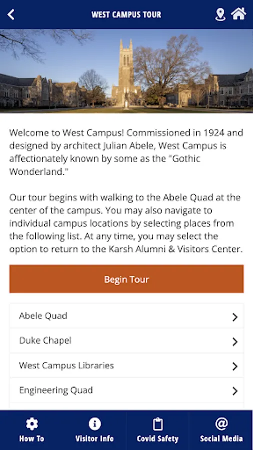 Self-guided walking tour of Duke University’s campus, designed by the Duke Office of Undergraduate Admissions.