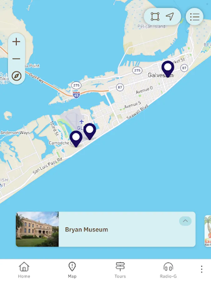 BUT - the coolest feature is that we are Geo-Aware, so you can get One-Click Navigation to all the Galveston Hot Spots - and when you click the Locator Pin - see what is close-by to you right now!
