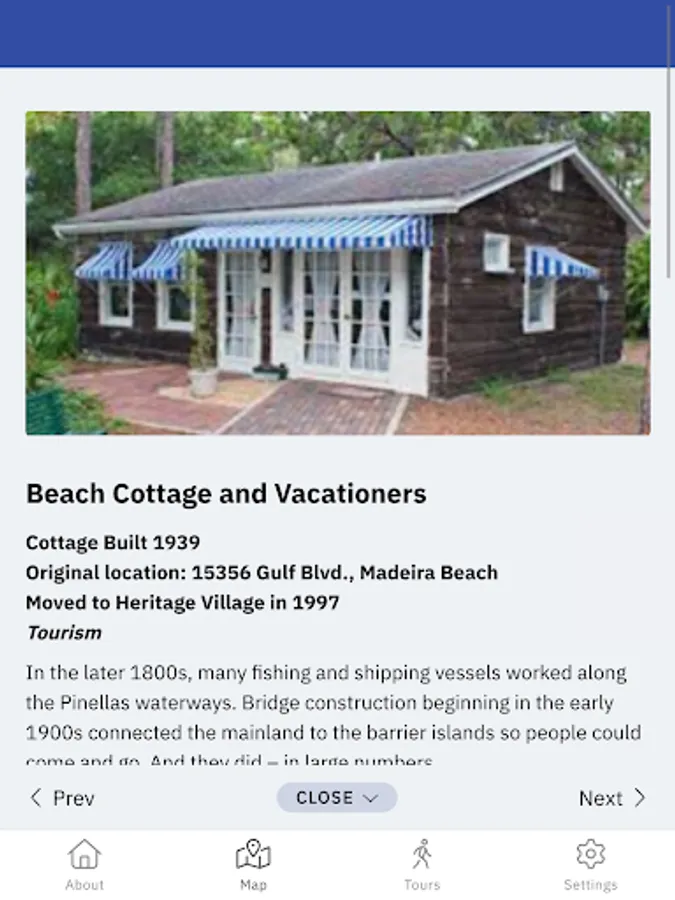 The Heritage Village virtual tour allows both onsite and offsite visitors the opportunity to explore the history of Pinellas County. Enjoy new and original content and photographs of our historic buildings and experience how historic Pinellas worked, lived, and played conveniently from your mobile device.