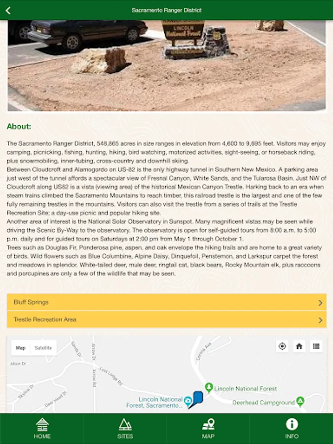 This app provides essential visitor information allowing you to discover the unique sites and recreational opportunities at Lincoln National Forest. Use this app to plan your trip, make the most of your visit, and connect with us! Through these interpretive tours, visitors and armchair travelers alike can learn more about the area’s diverse natural and cultural history. Featuring audio, image galleries, and historic imagery, the app tells the story of our rich landscape through the eyes and words of those dedicated to preserving it.