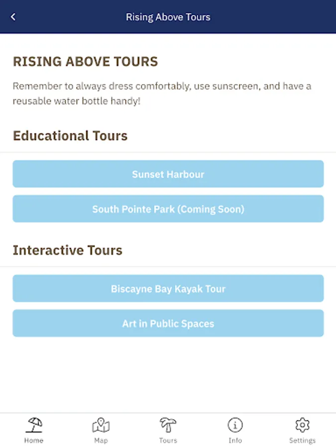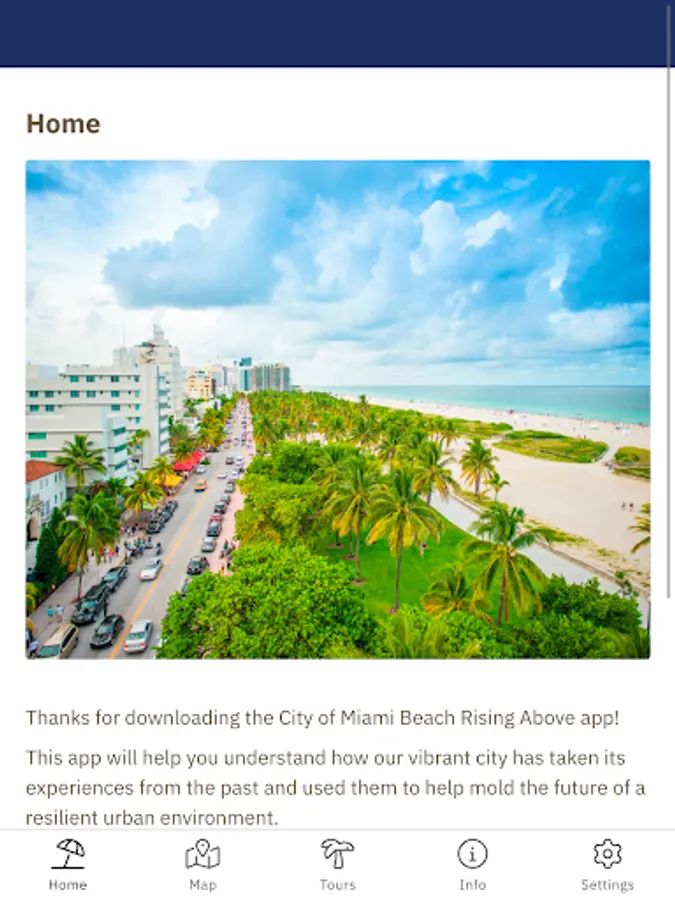 The Miami Beach Rising Above app is a great way to learn about our resilient, world-class city through self-guided tours. Learn about how Miami Beach adapts to a changing environment while highlighting the importance of its natural resources, vibrant arts, and unique culture.