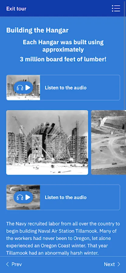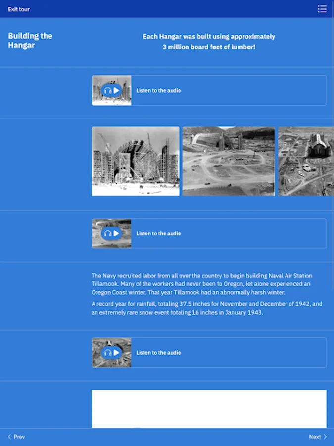 The Tillamook Air Museum is housed in a historic WW II Navy blimp hangar, located just south of Tillamook, Oregon. 'Hangar B' is home to over 25 aircraft, historical displays and artifacts surrounding aviation, Naval Air Station- Tillamook's history and WW II history. This app is a tool we designed to allow people to virtually tour the museum and aircraft collection from anywhere in the world, as well as help guide people through the museum when they are on site for a self-guided tour. We hope you enjoy the app, please feel free to send us feedback through the app or visit our website www.tillamookair.com for more information on the museum, upcoming events and displays!