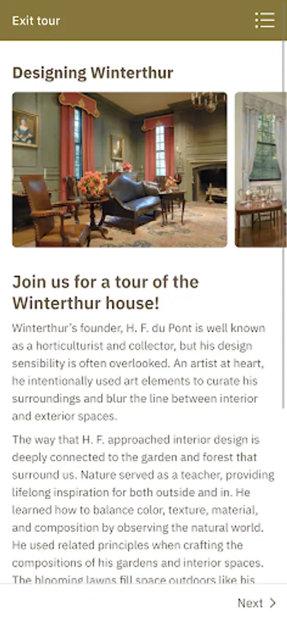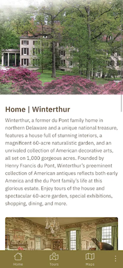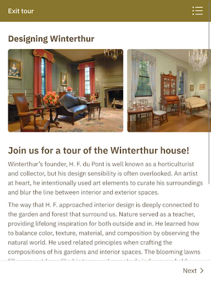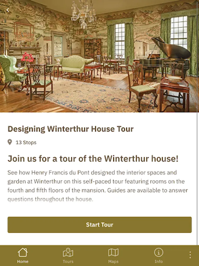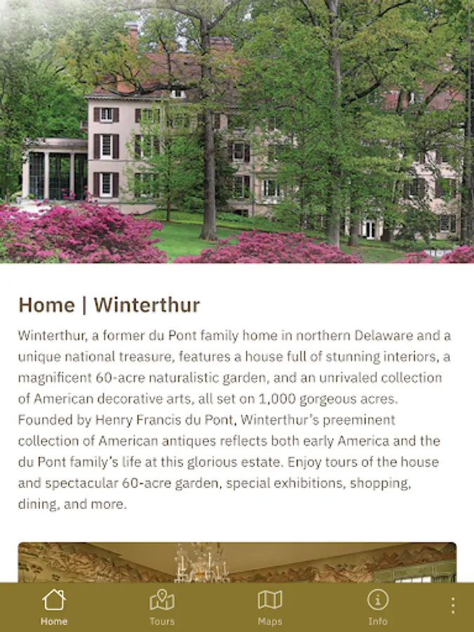 Download the official Winterthur mobile guide to learn more about Winterthur’s current exhibitions, house tours, and programs.