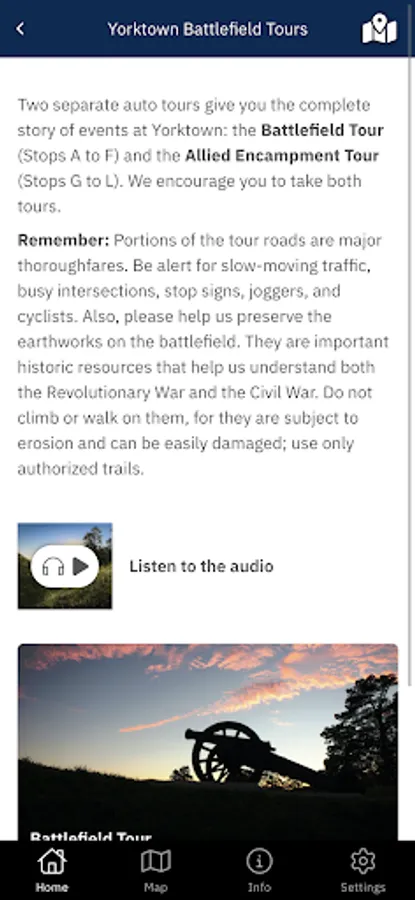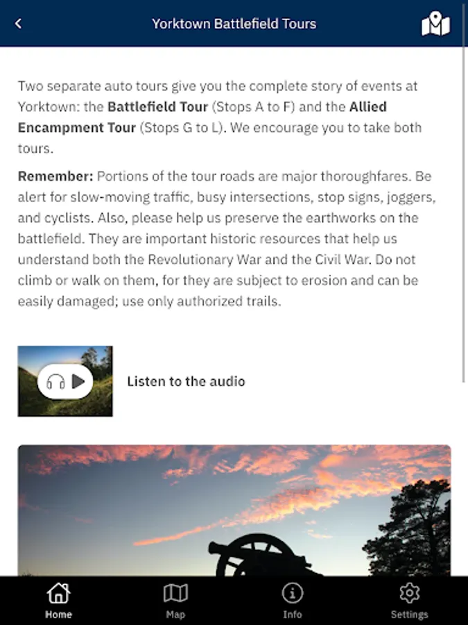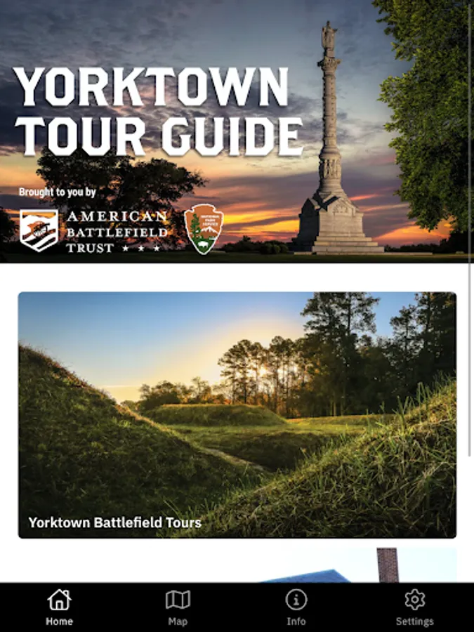 The Yorktown Tour Guide was produced by The American Battlefield Trust in partnership with the National Park Service's Yorktown Battlefield, part of Colonial National Historical Park. This app is one of the Trust expanding lineup of apps that are ready to be downloaded today at https://www.battlefields.org/battleapps.