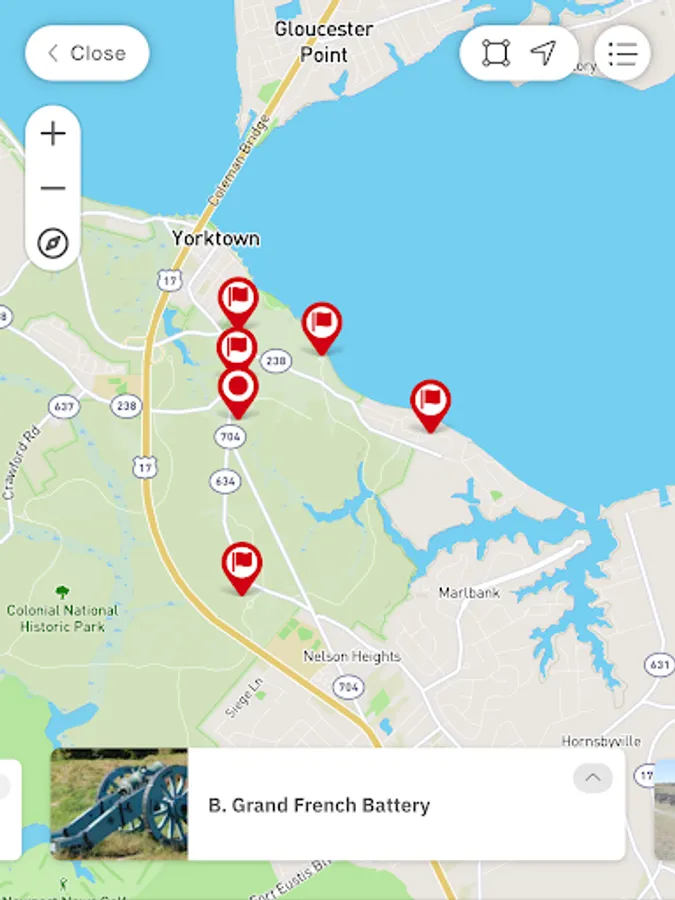Let the Yorktown Tour Guide’s GPS-enabled audio tours lead you through 300 years of American history on a walking tour of Historic York Town or get up close to the events of the Siege of Yorktown on two separate driving tours.