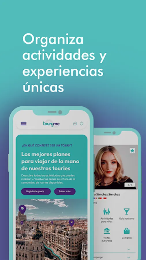 With TOURYME discover all the activities and plans offered by TOURIES for your next trip. Or if, on the other hand, organizing is your thing, become a TOURY and get extra income by agreeing activities with the TOURISTs.