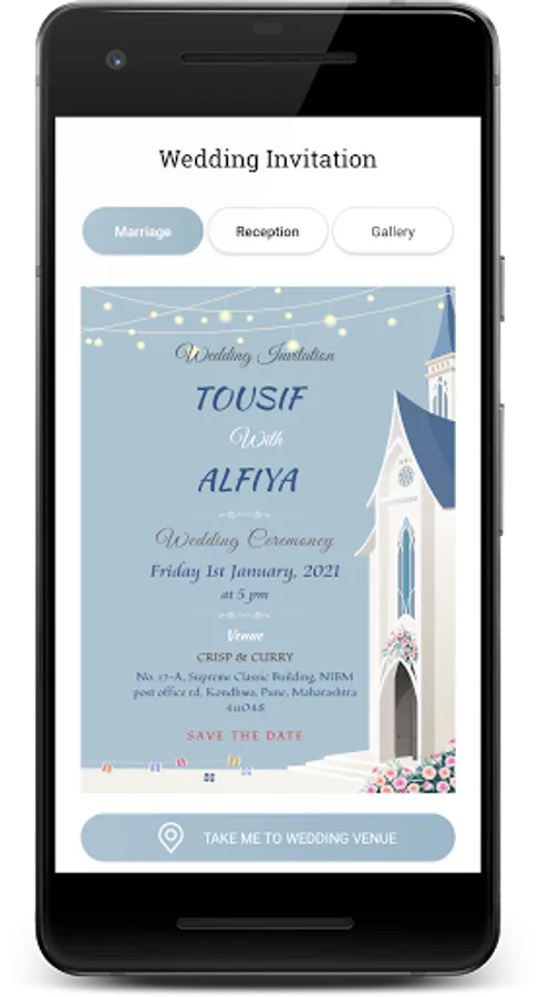 We invite you to share the joy with us as the wedding of Tousif with Alfiya takes place, Inshallah on 1st January 2021 at CRISP & CURRY, Pune.