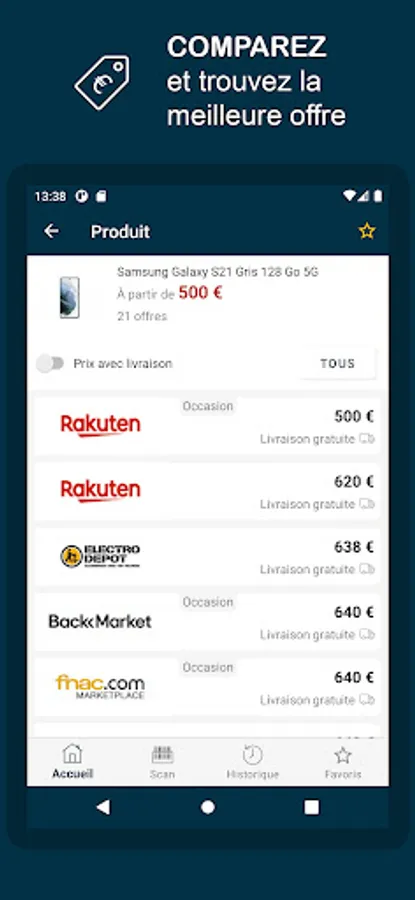 • Scan the barcode of a product and quickly find its best price on the Internet.