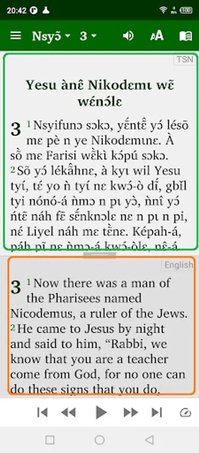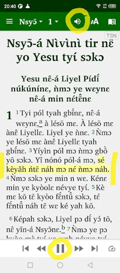 • Give your phone permission to download the Toussian audio files for the New Testament texts. Once downloaded, the audio files will remain on your device for further use in offline mode.