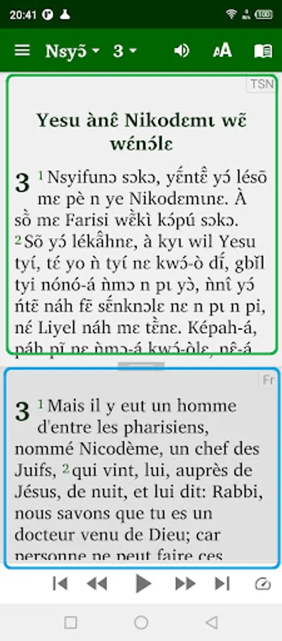 • Give your phone permission to download Toussian audio files for New Testament texts. Once downloaded, the audio files will remain on your device for reuse in offline mode.