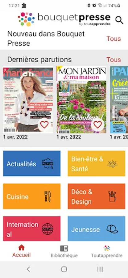 Thanks to the Bouquet Presse application, read more than 200 press titles wherever you want, whenever you want!