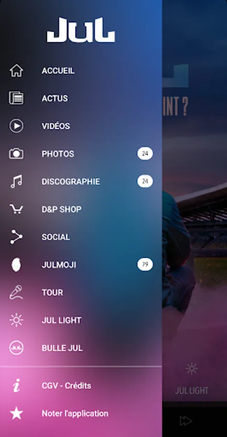 Discover the free application of the Marseille rapper JUL and find all his news in addition to exclusive content (Julmoji, exclusive photos, etc.).