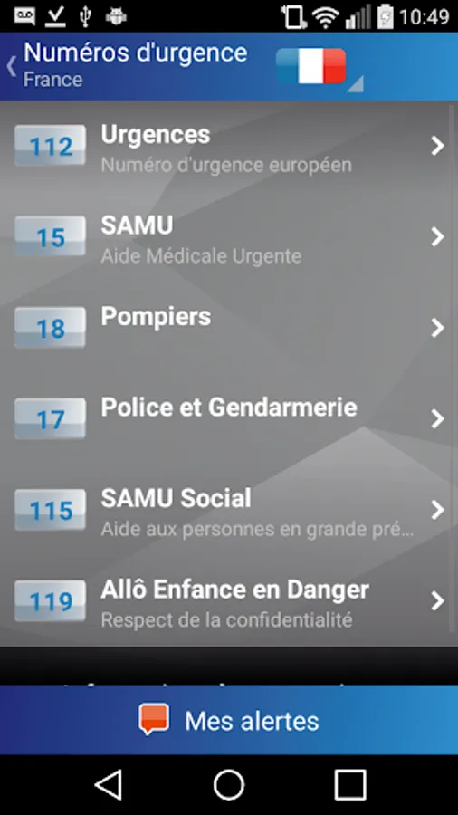 - Access to the country's emergency numbers in which you find yourself and be geolocated by emergency services,