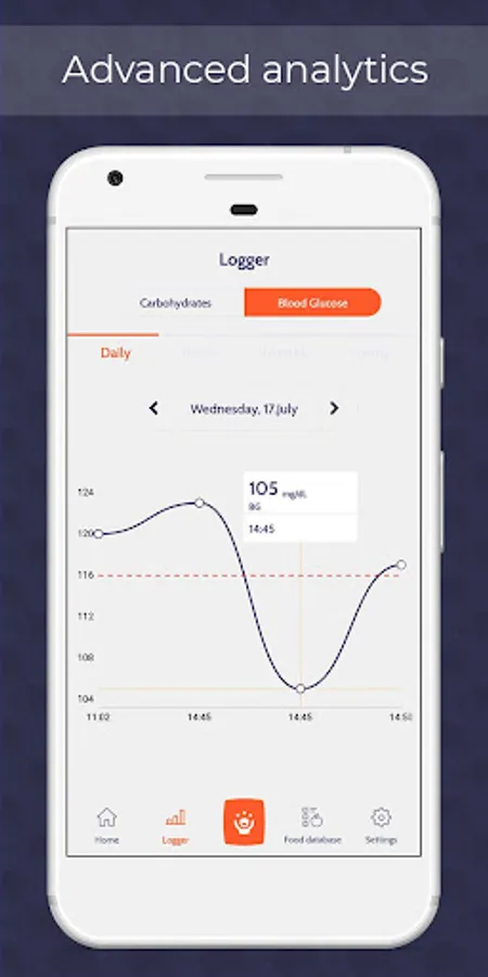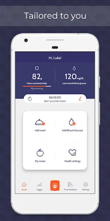 The logger keeps track of every meal and blood glucose measurement, so you don't have to.