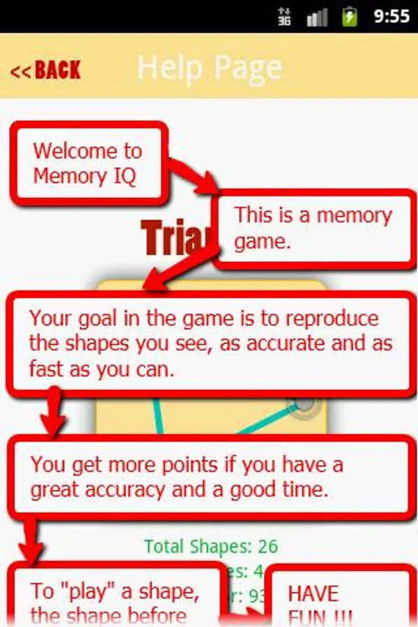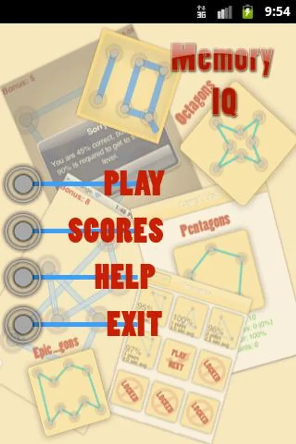 Memory IQ is a memory game. User goal is to reproduce the shapes that appears as accurate and as fast as possible.
