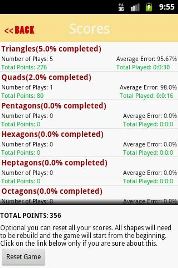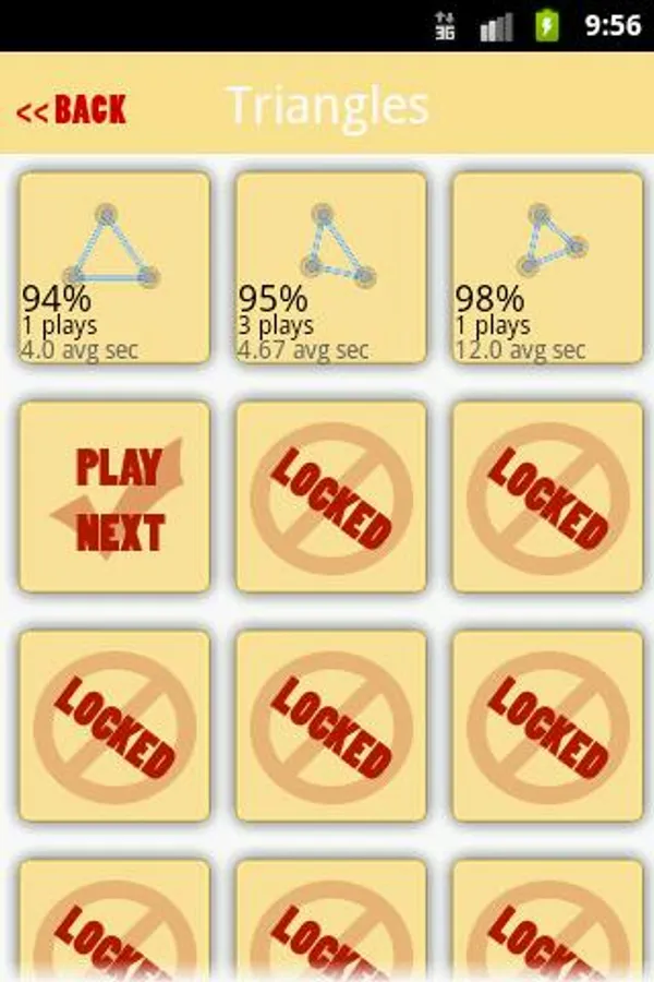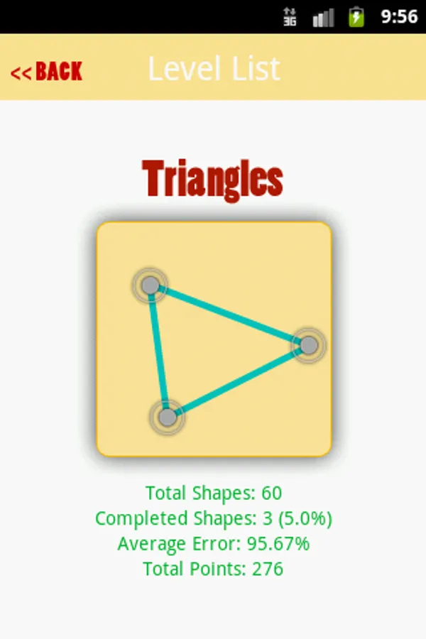 Levels starts with Triangles and goes more complicated as the game goes forward.