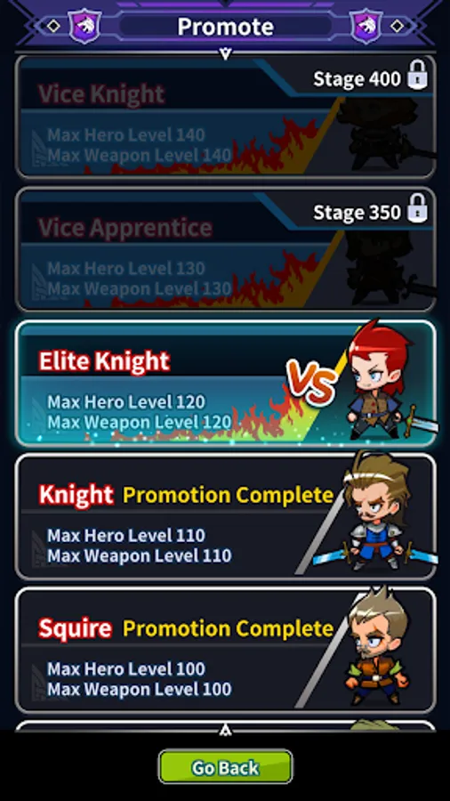 Break through your limits by using promotions. Unlock hero and weapon level restrictions to become a King.