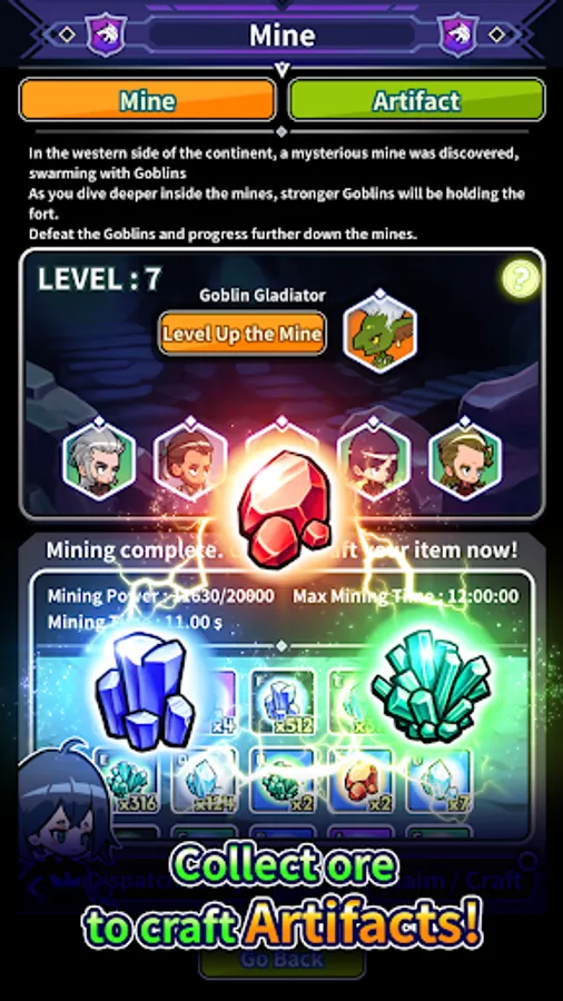 The mining won't stop even when you're away. You can synthesize powerful Artifacts using mined materials.