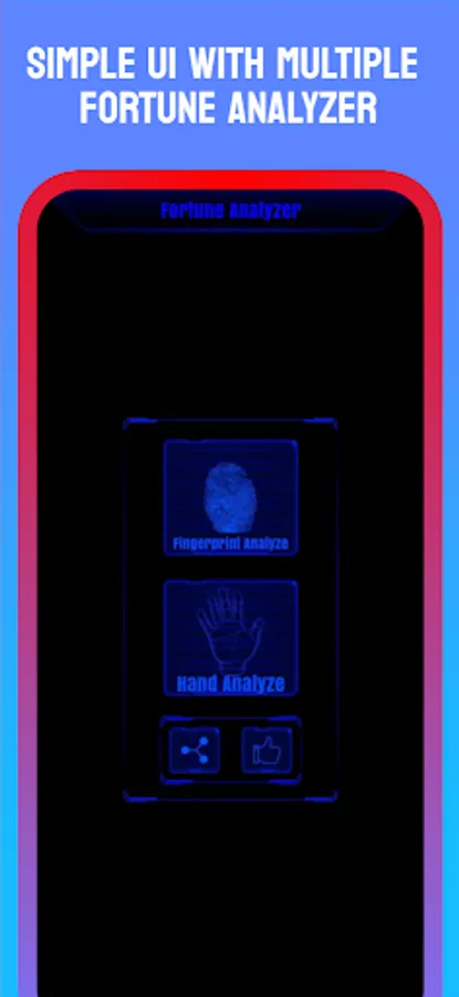Fortune analyzer capable of giving a daily fortune analysis by using fingerprint scan and hand scan. Fingerprint scan and hand scan options both have special lines for you to analyze to get astrological results. Live future reading based on the hand scan.