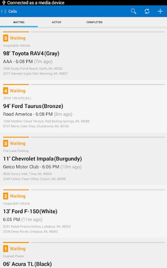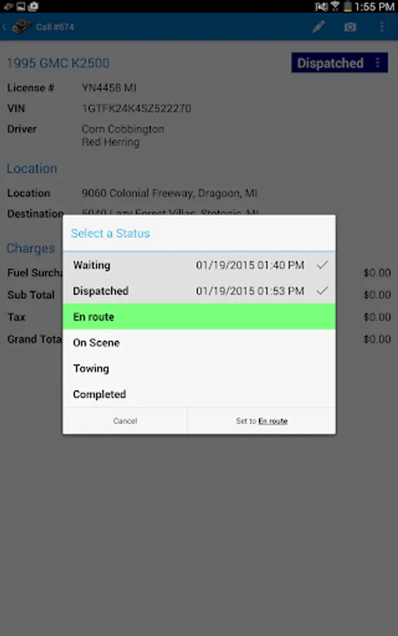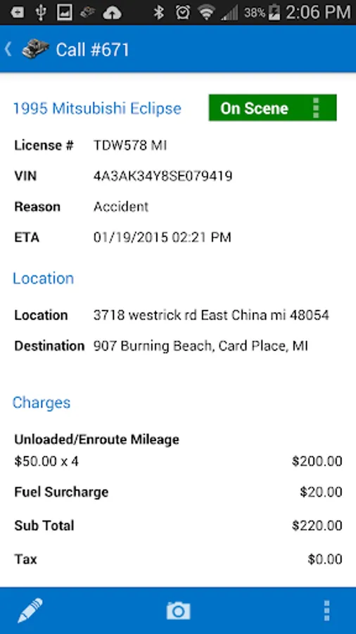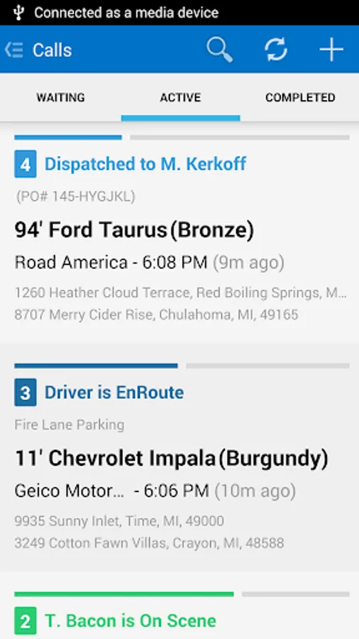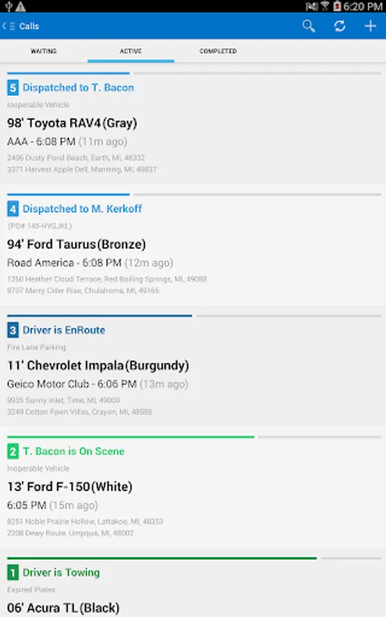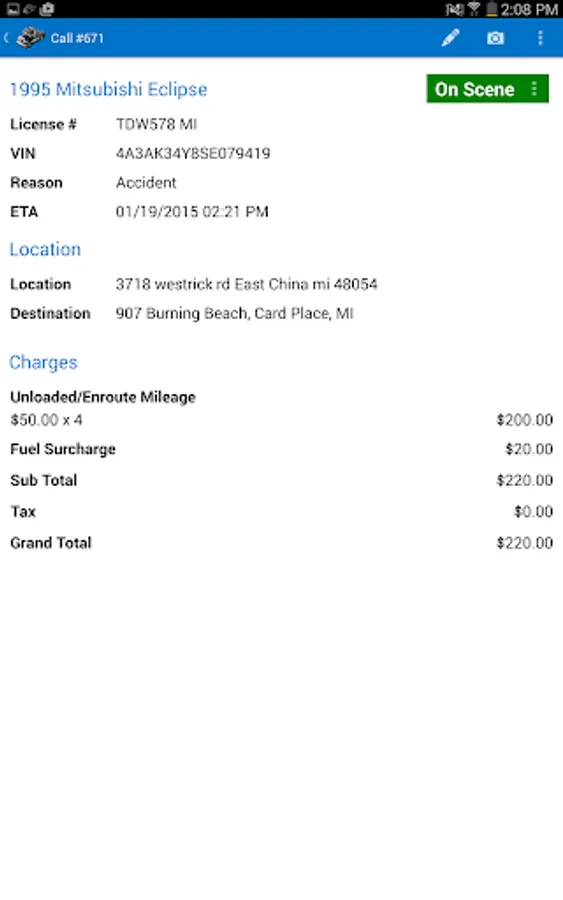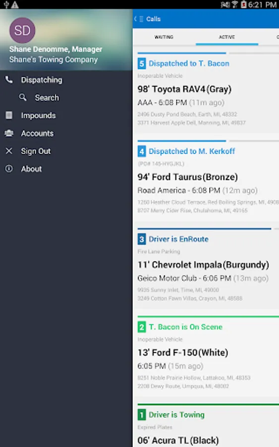 Towbook for Android is a mobile version of Towbook that lets you access your company's Towbook account from any Android device. Add new calls, dispatch calls to drivers, receive job updates, push notifications, send/print receipts, upload photos, use plate-to-VIN technology, manage impounds and much more directly from your device.