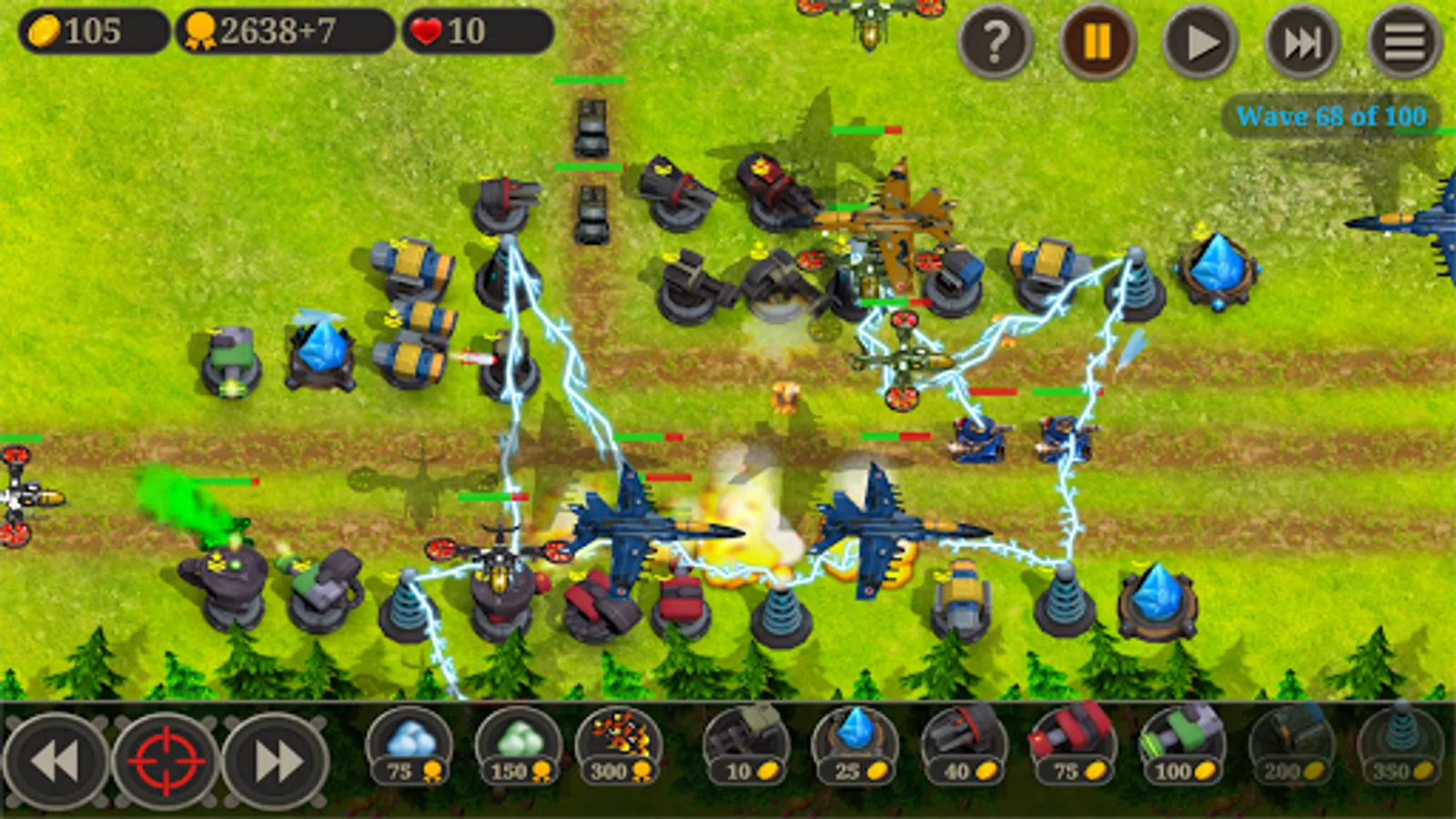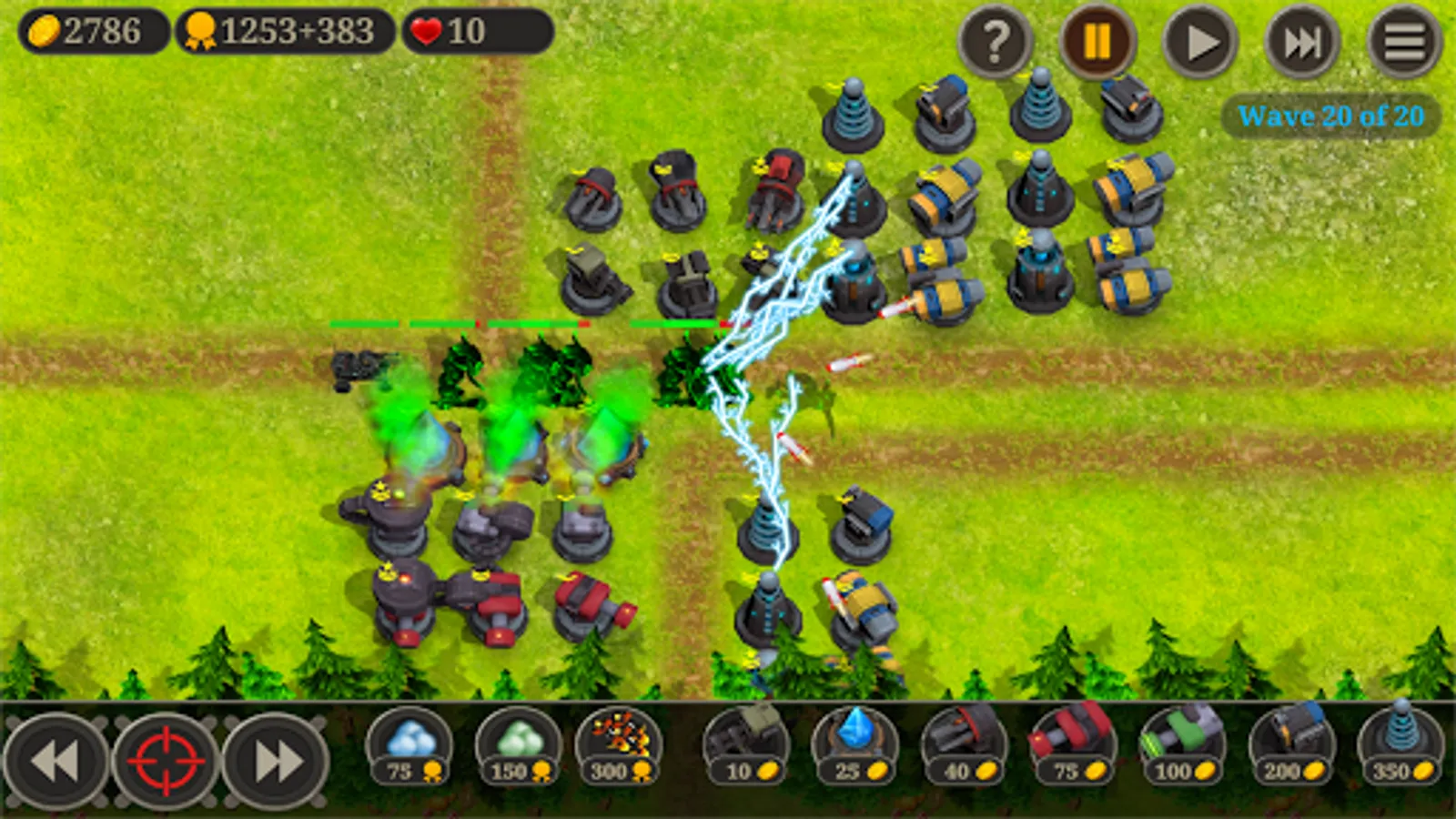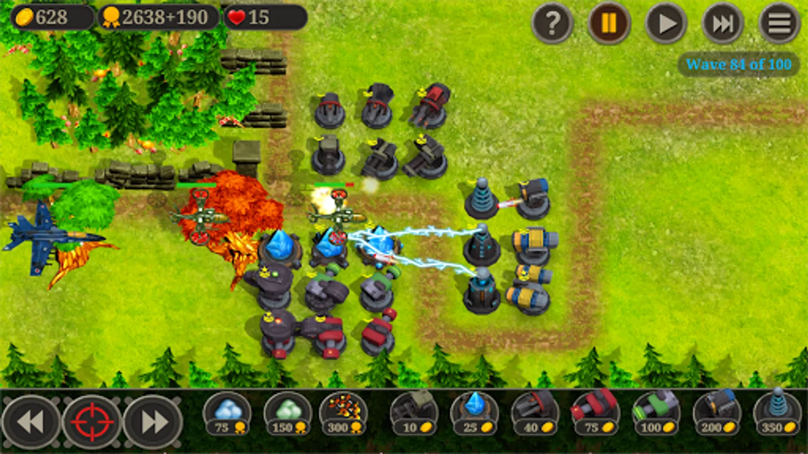Protect road(s) from enemy attacks. When an enemy is defeated, you will earn money and experience points. Spend your money to upgrade towers or build more towers. Tower type and position is is the essential strategy of the game. Spend experience points to use super powers or permanent tower upgrades.