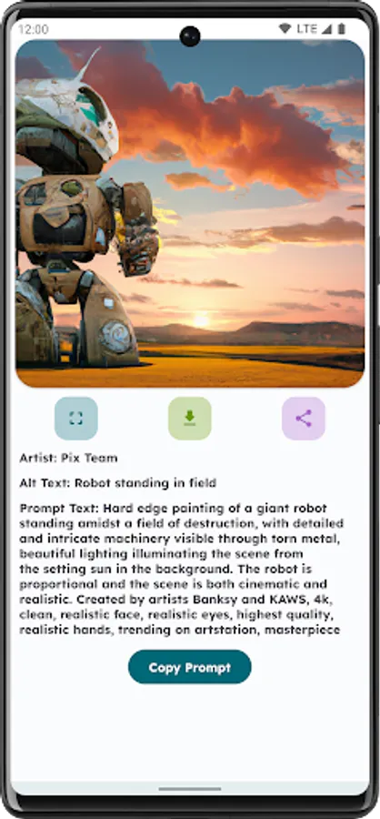 This app is a unique and innovative application that utilizes artificial intelligence technology to turn text into visually stunning images. This app is designed to help users who are looking for an easy and convenient way to express themselves through images and to communicate their ideas in a creative and visually appealing way. With AI Image Creator, you can take any written content, such as a blog post, a poem, a quote, or even a list of instructions, and turn it into an eye-catching image in a matter of minutes.