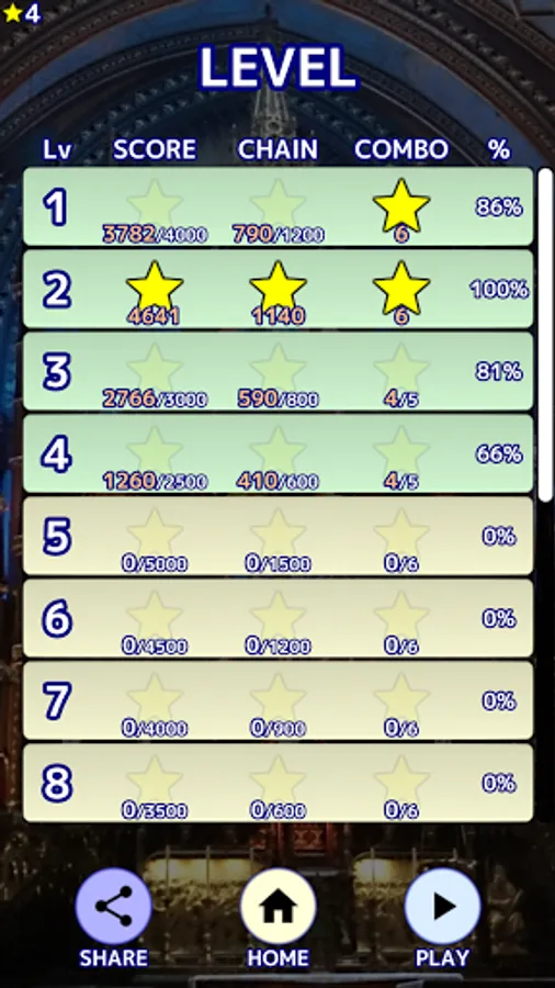 You can advance to the next level by erasing a certain number of pieces in time. The time limit decreases as the level goes up.