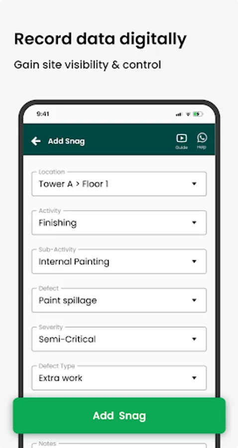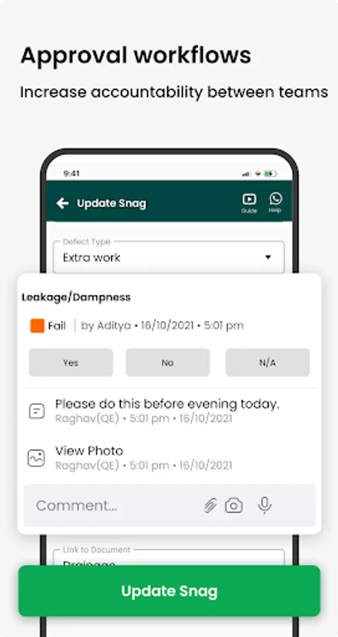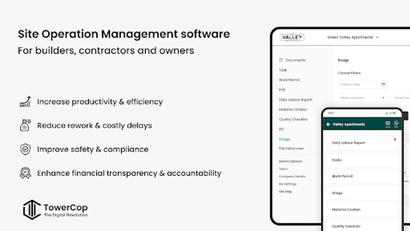10.All site data, including live-work updates like photos, drawings, documents, tasks, POs, invoices, material requests, attendance at one place!