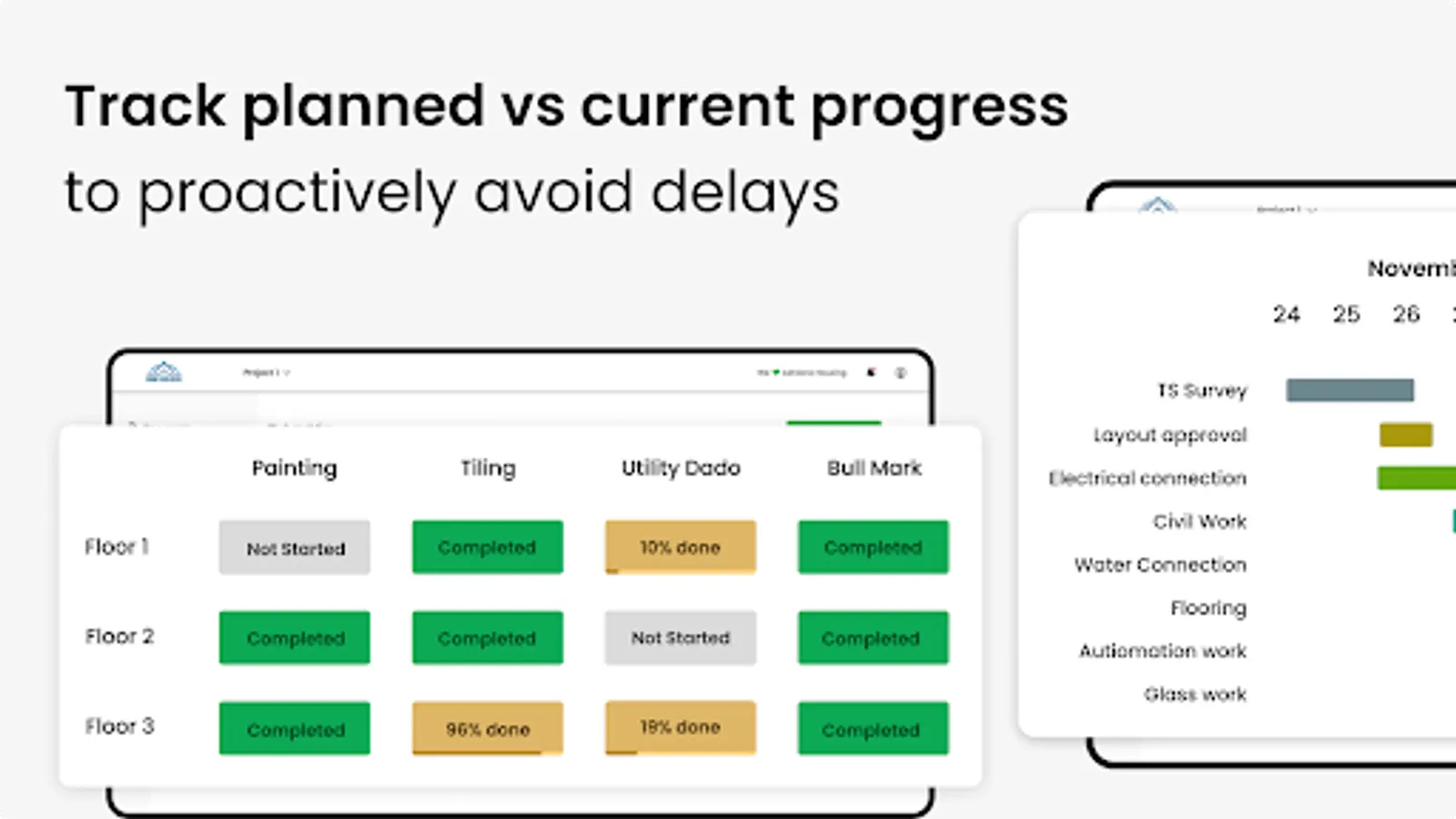 CXOs and owners can get a modernized dashboard with Live tracking and Project updates. Managing cost and labor gets easy with the Material and workforce data.
