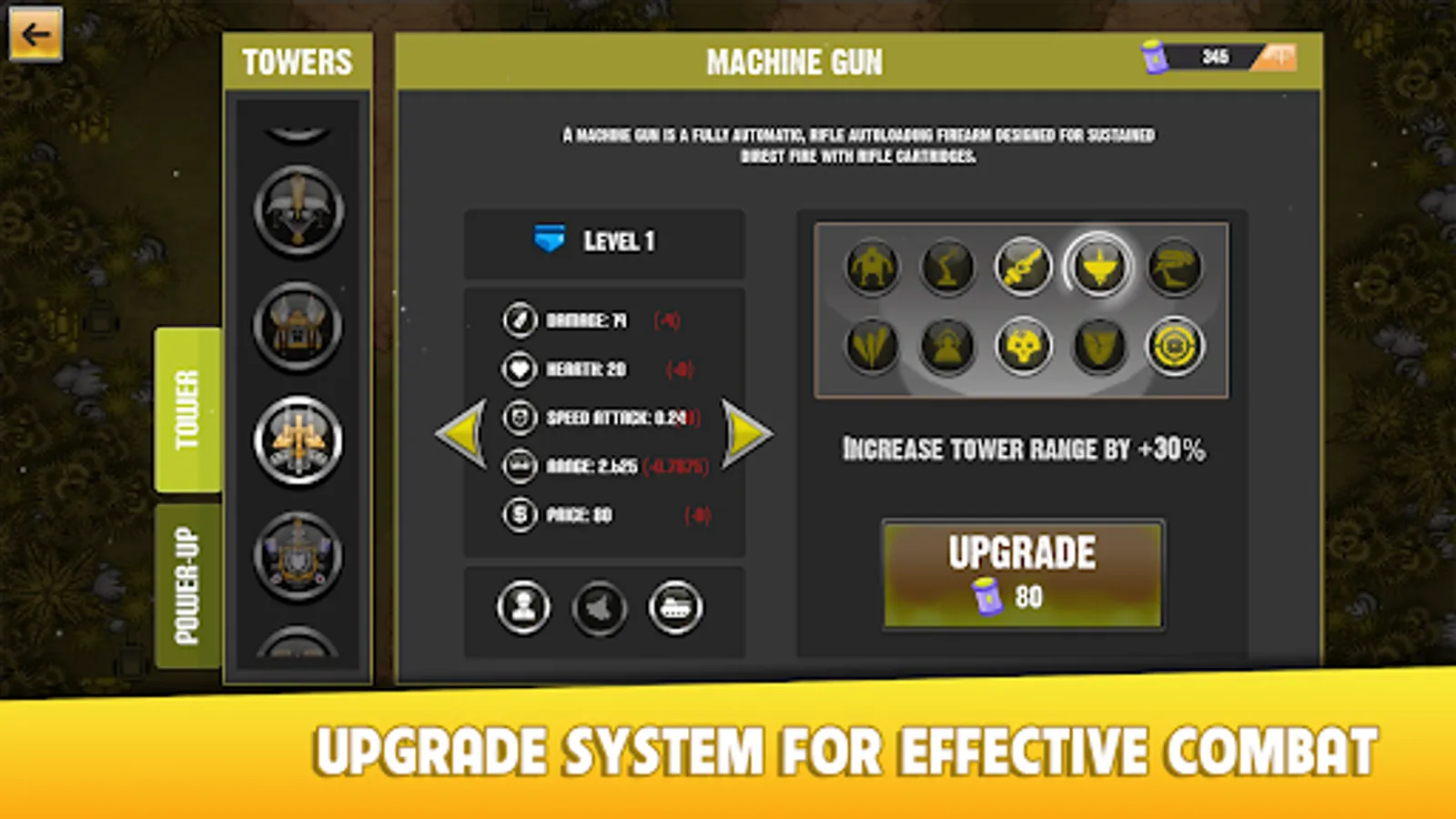 • Tower upgrade system within and outside gameplay.