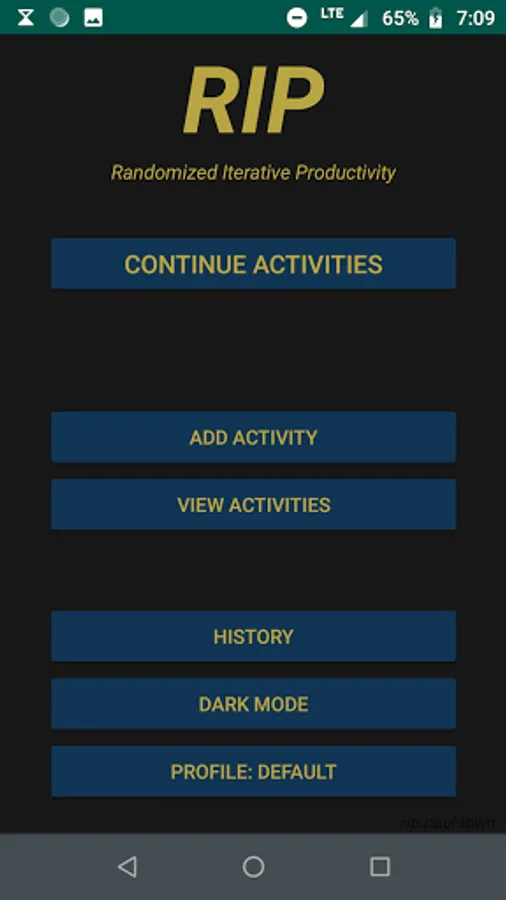 RIP (Randomized Iterative Productivity) solves these problems and makes lists fun by adding a slight randomization to the daily activities and more!