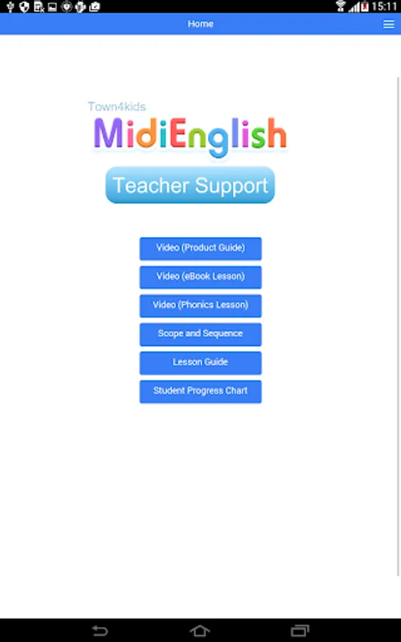 The MidiEnglish Teacher-Support app provides teachers easy access to the MidiEnglish product videos, scope and sequence of the curriculum, and lesson-by-lesson guide for teachers. If students have attempted any exercises in the student app, teachers can also use this app to check students’ quiz scores and view their progress charts.