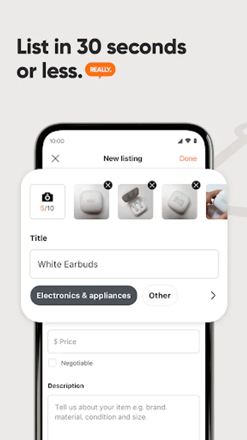 It takes less than 30 seconds to post. Upload your old stuff or search for something you want. Simply start a chat to make a deal.