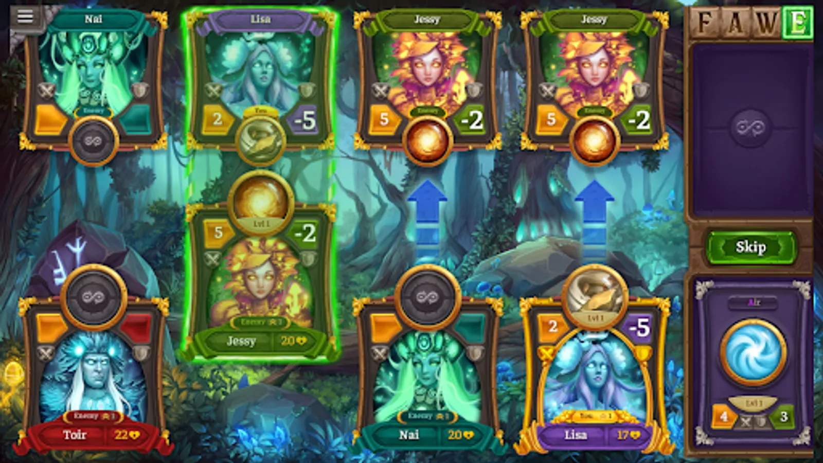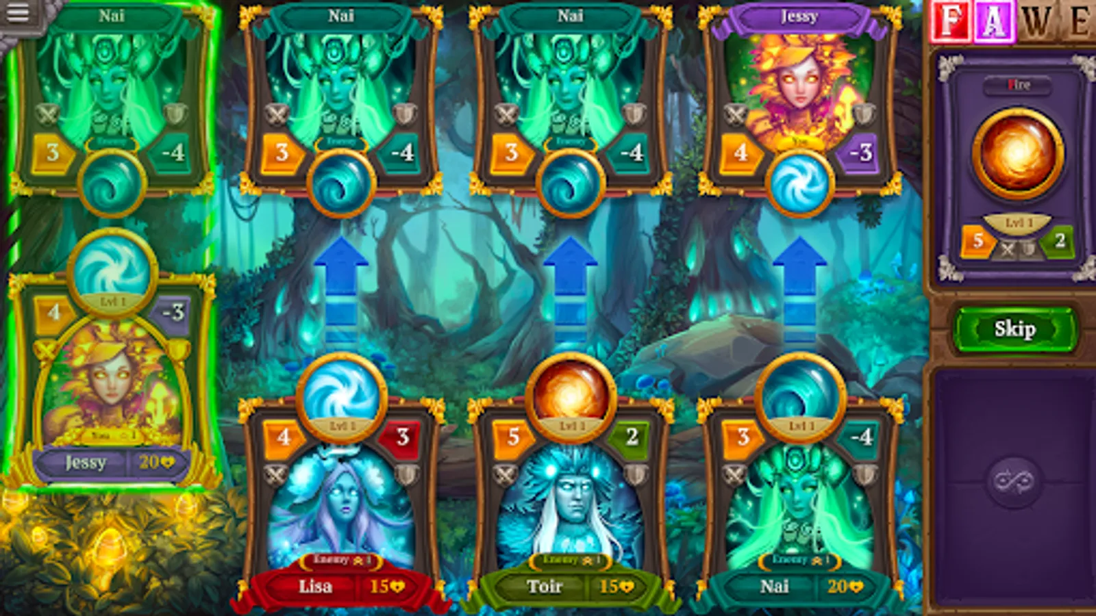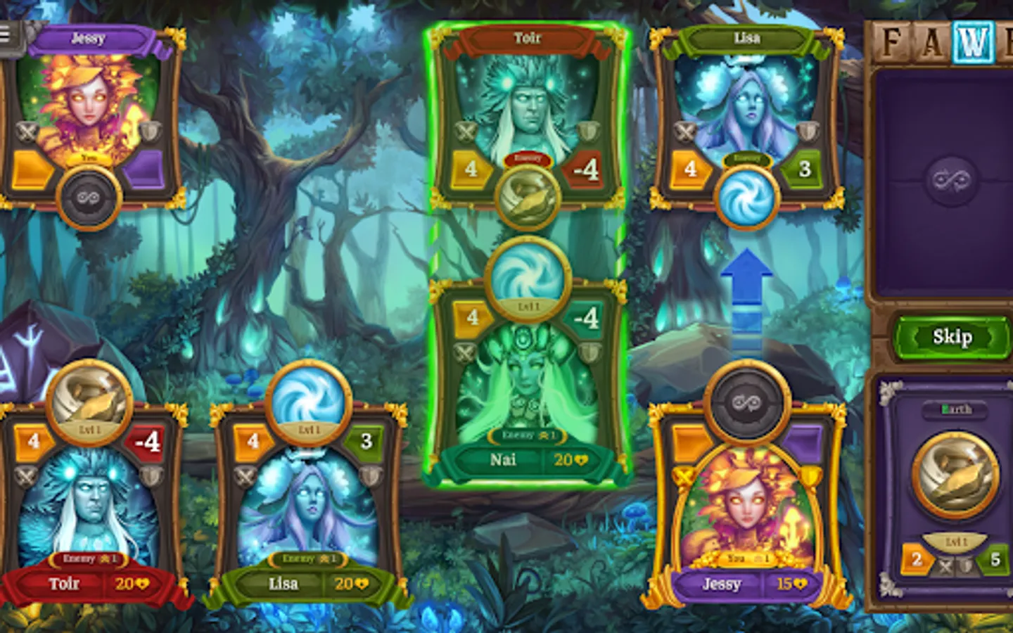 Every evening, forest spirits gather in a glade to play FAWE. In this game, cards grant the power of natural elements. By collecting them all, the super element FAWE emerges, allowing players to enhance their skills.